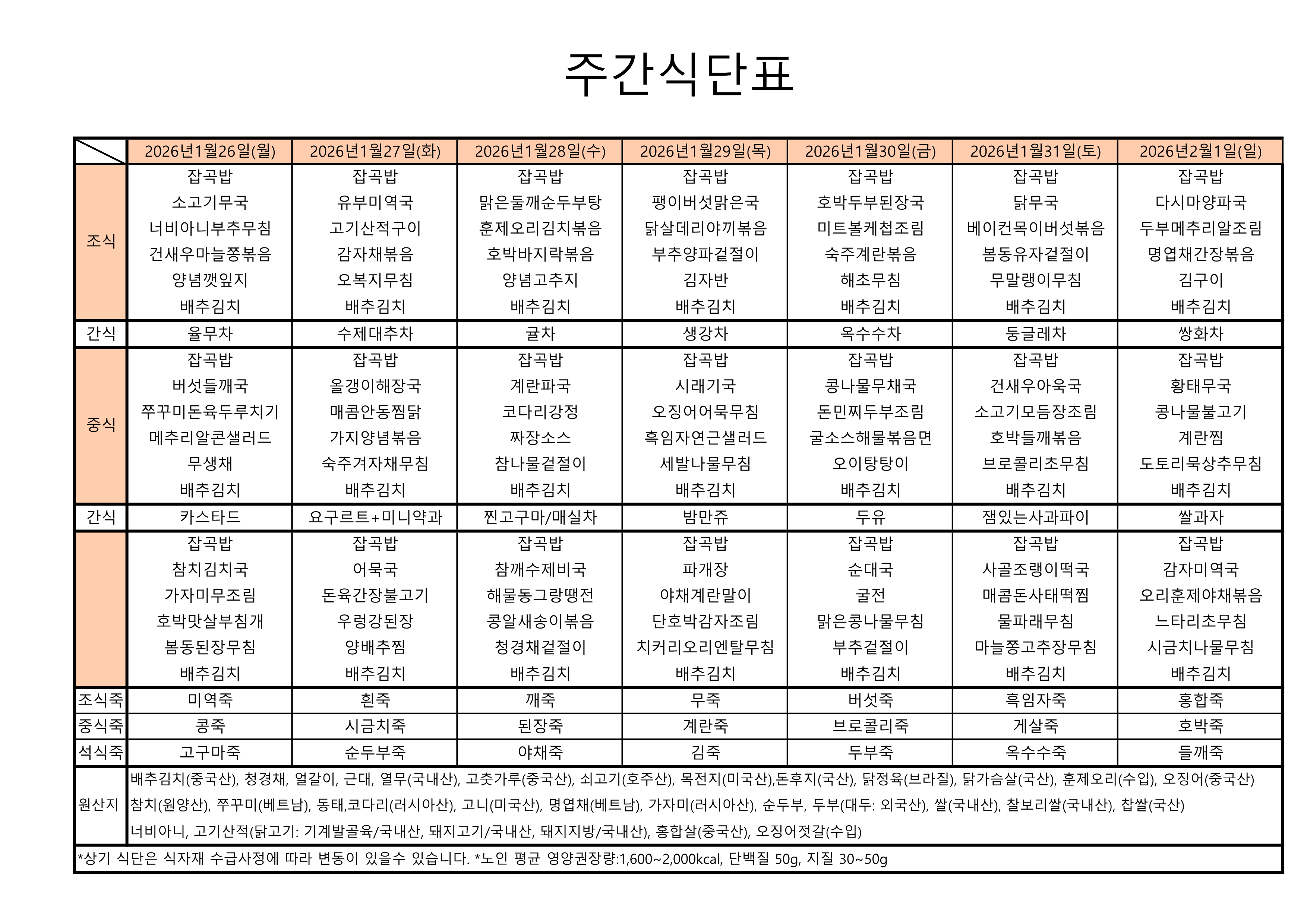 1¿ù ´Ù¼¸Â°ÁÖ ½Ä´ÜÇ¥
